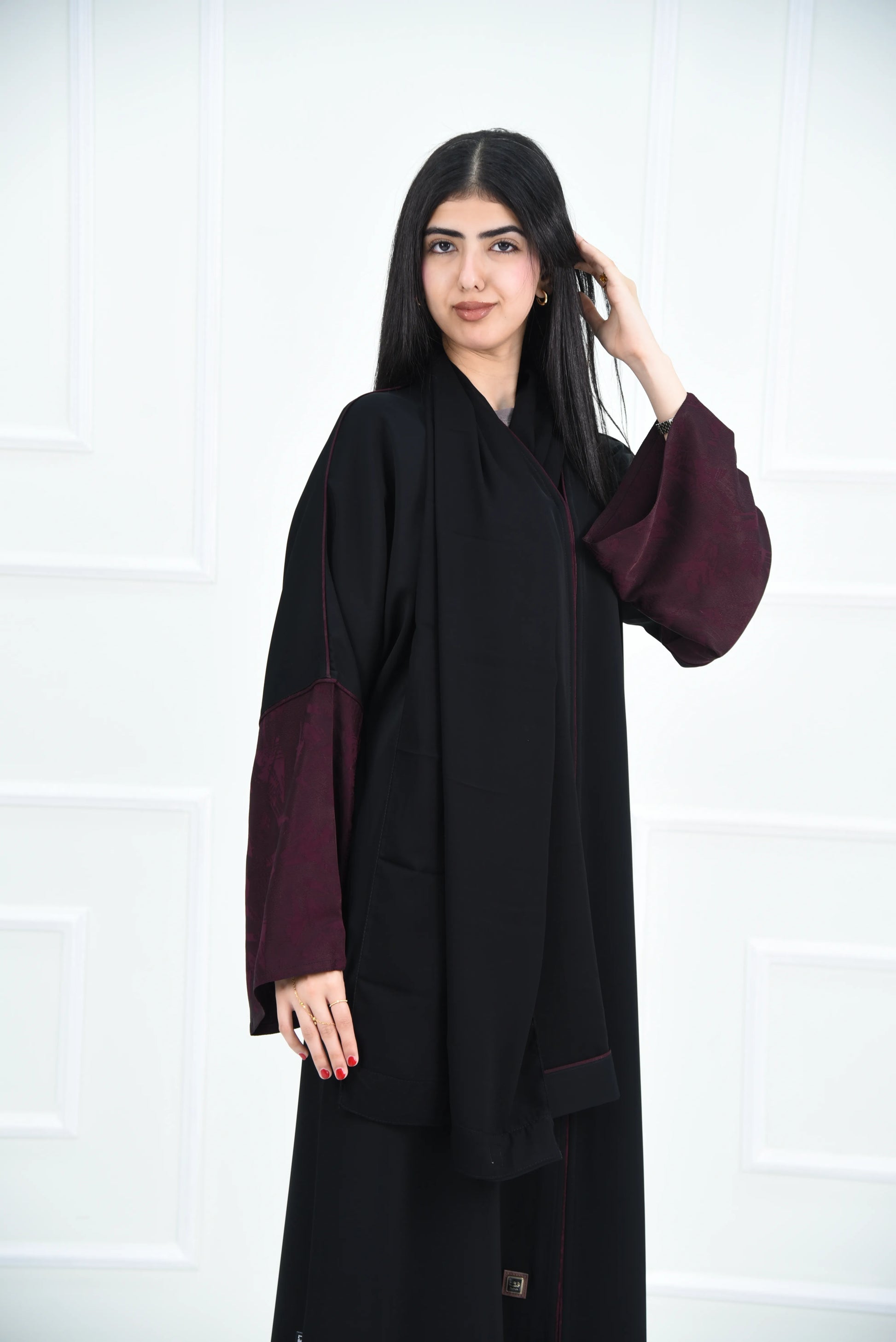 تعطي تناغم جميل وتكمل شكل العباية بأسلوب مرتب وراقي.